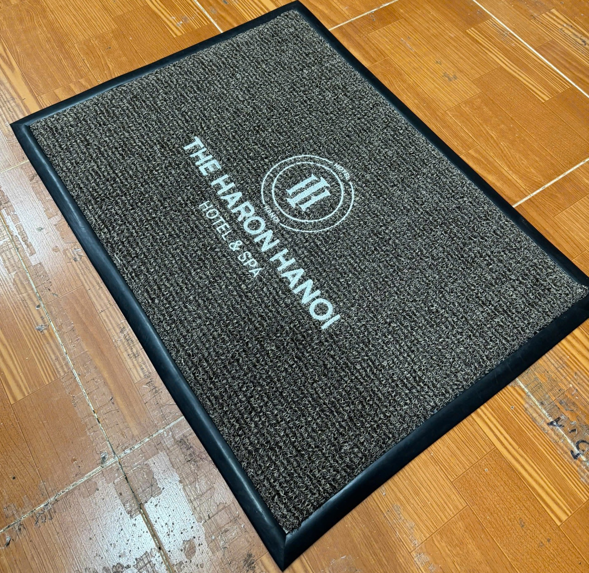 Đơn vị chúng tôi là doanh nghiệp chuyên cung cấp thảm trải sàn cắt theo yêu cầu, bo viền cao su và thực hiện in thêu logo lên thảm cho khách hàng. Những loại thảm trải sàn in thêu logo thường để trước cửa ra vào để nhận diện thương hiệu.