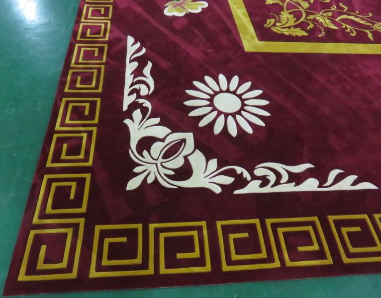 Thảm khánh tiết được dệt thủ công từ sợi acrylic là dòng sợi len cao cấp, sợi acrylic là sợi tổng hợp được làm từ polymer được tạo ra bằng cách trùng hợp acrylonitril hoặc đồng trùng hợp với các monome khác. Nó có một kết cấu mềm mại và ấm áp, khả năng nhuộm, hút ẩm và chống mốc cực kỳ tốt. Bởi vậy nó có các ưu điểm vượt trội hơn so với các chất liệu sợi khác nên thảm khánh tiết dệt tay acrylic là một lựa chọn hợp lý cho phòng khánh tiết cần sự sang trọng.
