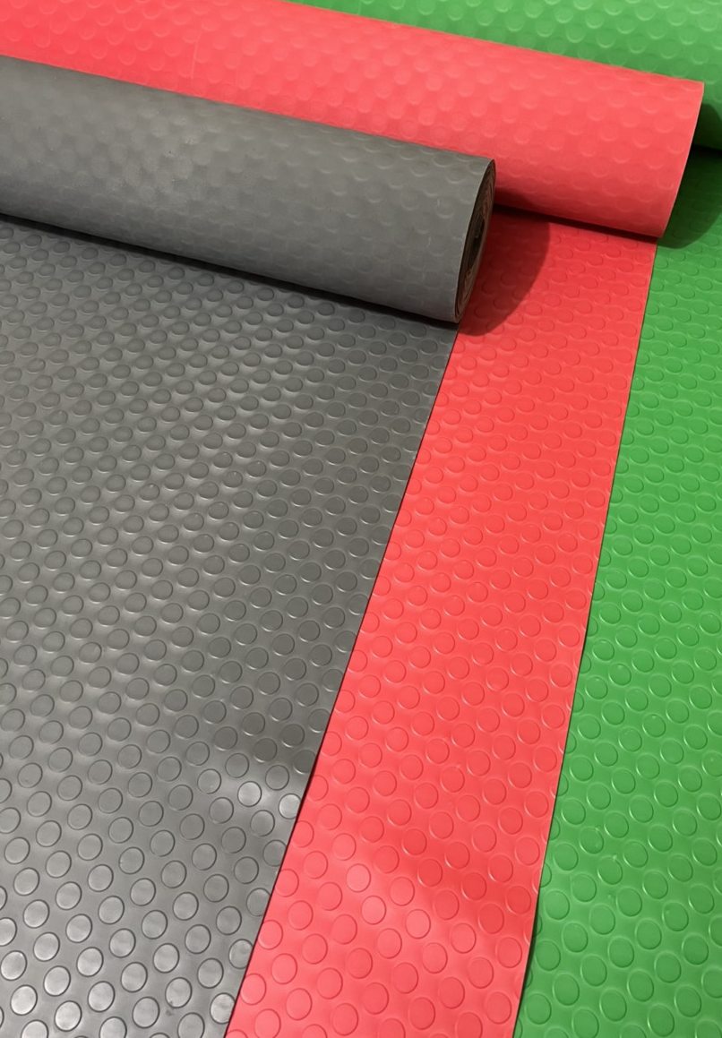 Thảm su trải sàn chống trơn nút tròn là dòng sản phẩm tấm su trải sàn có bề mặt vân chống trơn hình nút tròn rất đẹp, tấm su trải sàn nút tròn thường trải sàn ở khu vực chống trơn trượt, chống xước nền nhà ở khu vực để xe ô tô, xe máy. Loại tấm su trải sàn nút tròn này rất tiện lợi, giá thành rẻ và dễ đàng lắp đặt nên được nhiều khách hàng ưa chuộng. Thông thường thảm su trải sàn chống trơn nút tròn có 3 màu thông dụng là màu xám, xanh lá, đỏ.