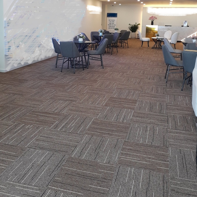 Về mặt hoa văn thì dòng thảm trải sàn này có kiểu hoa văn kẻ sọc rất đơn giản và hiện đại nên hầu như phù hợp với nhiều dạng công trình ngày nay như các công trình văn phòng làm việc hay các công trình khách sạn.