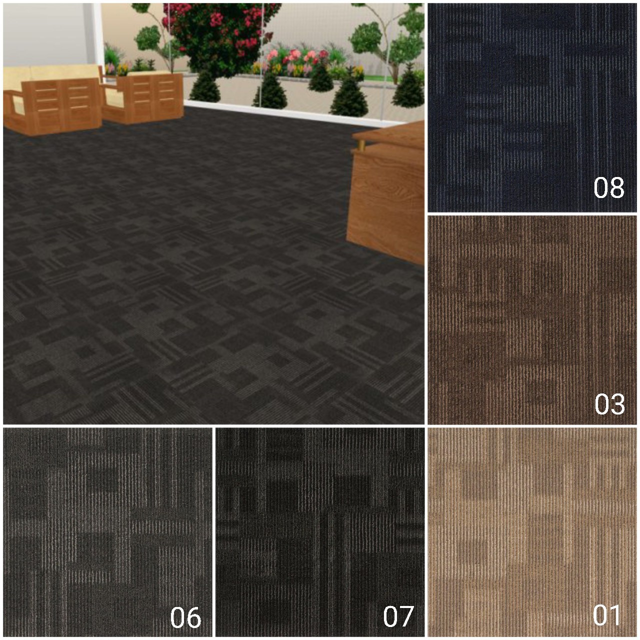 Thảm trải sàn DUK-GA Là dòng thảm gạch (Còn gọi là thảm tấm) có kích thước 50cmx50cm rất được ưa chuộng hiện nay vì có nhiều ưu điểm nỗi bật so với các dòng thảm trải sàn khác.