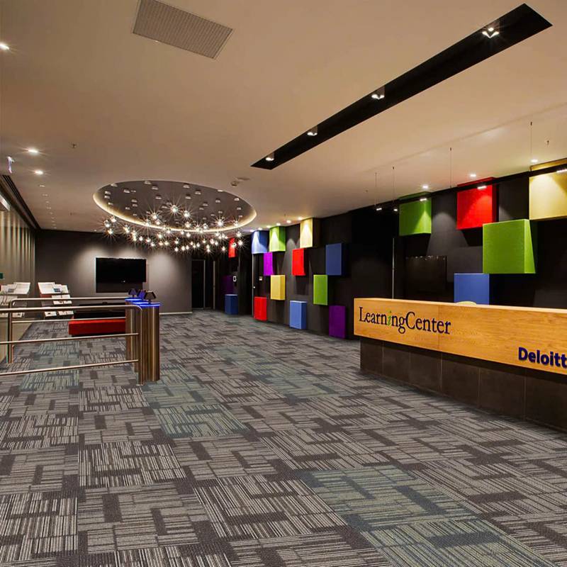 - Tạo không gian chuyên nghiệp, hiện đại: Thảm tấm giúp không gian văn phòng, showroom, khách sạn trở nên sang trọng, chỉn chu, đẳng cấp giúp tăng giá trị thẩm mỹ cho toàn bộ không gian.
